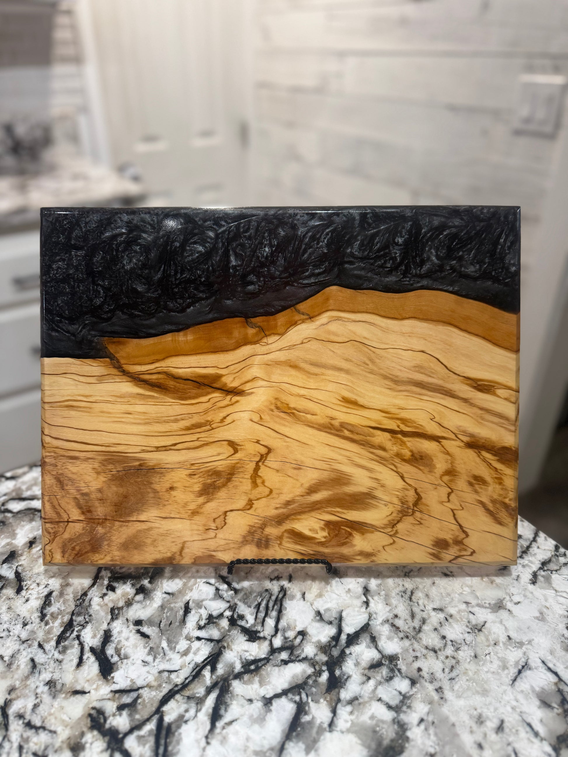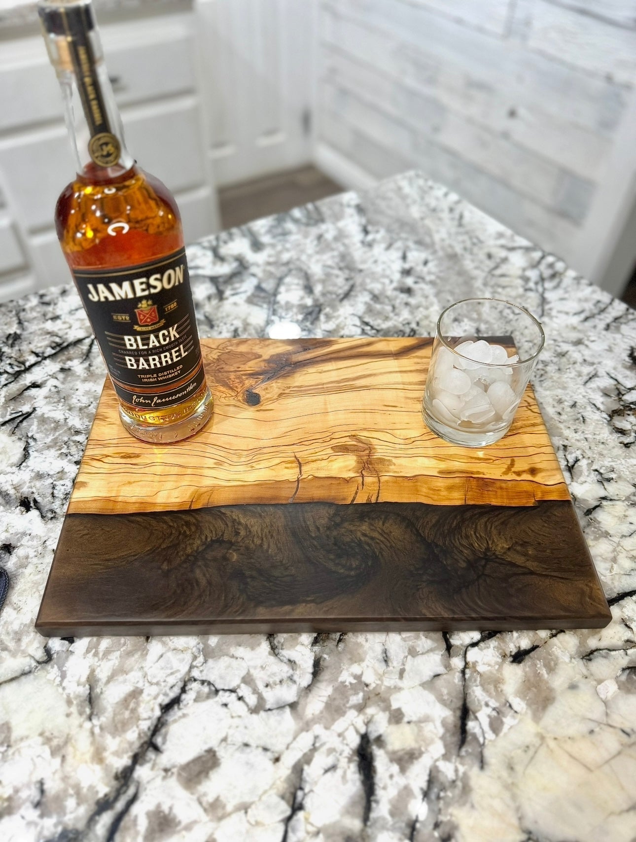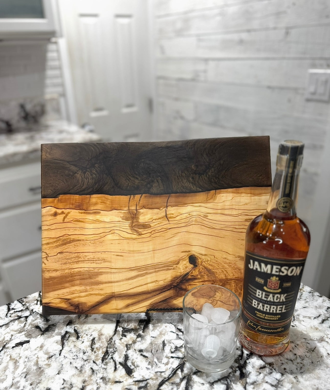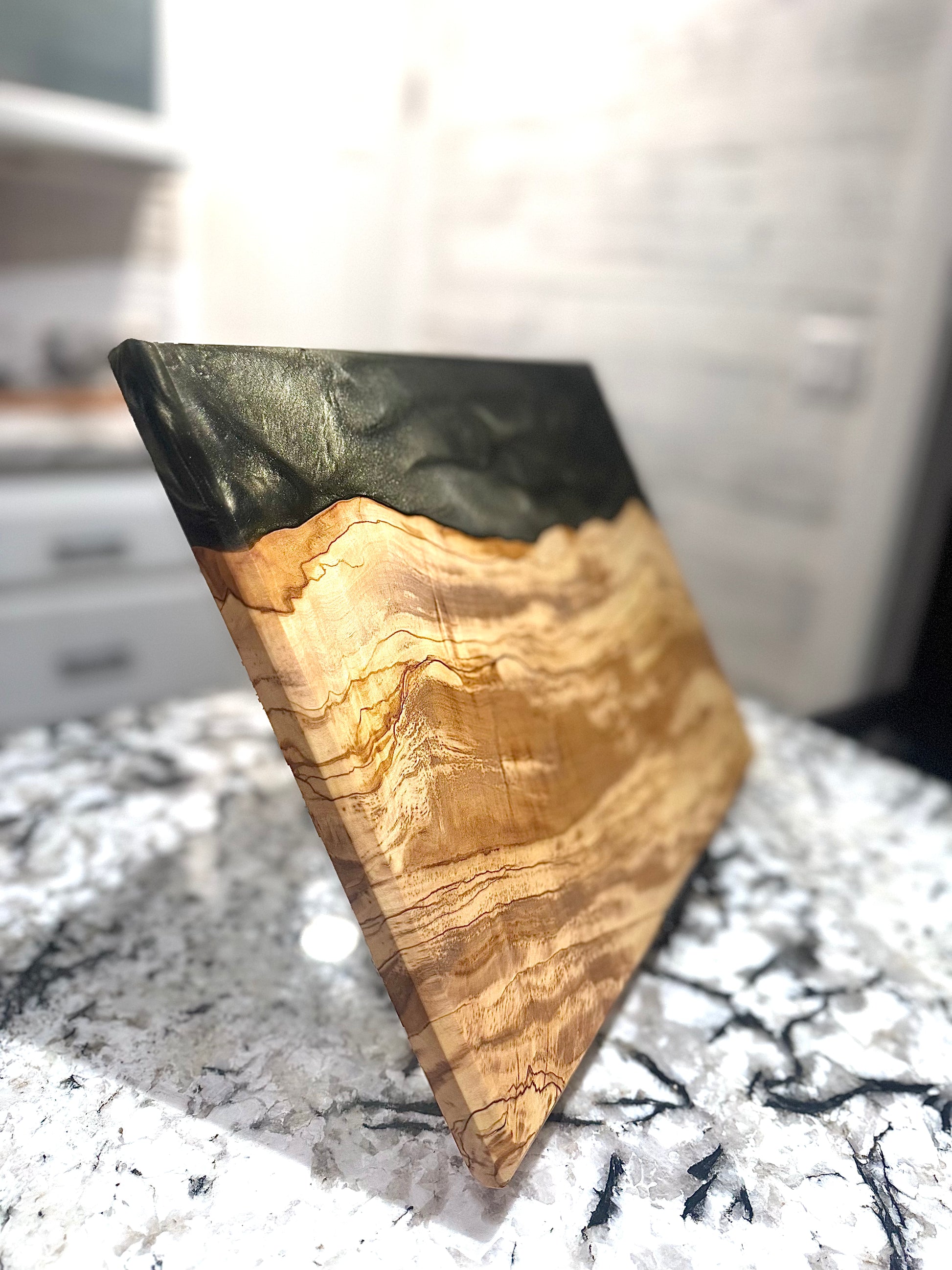Offering Eastern Olive and Epoxy Serving Boards for a special occasion or daily use. These boards show off their elegant beauty with epoxy swirls along side.