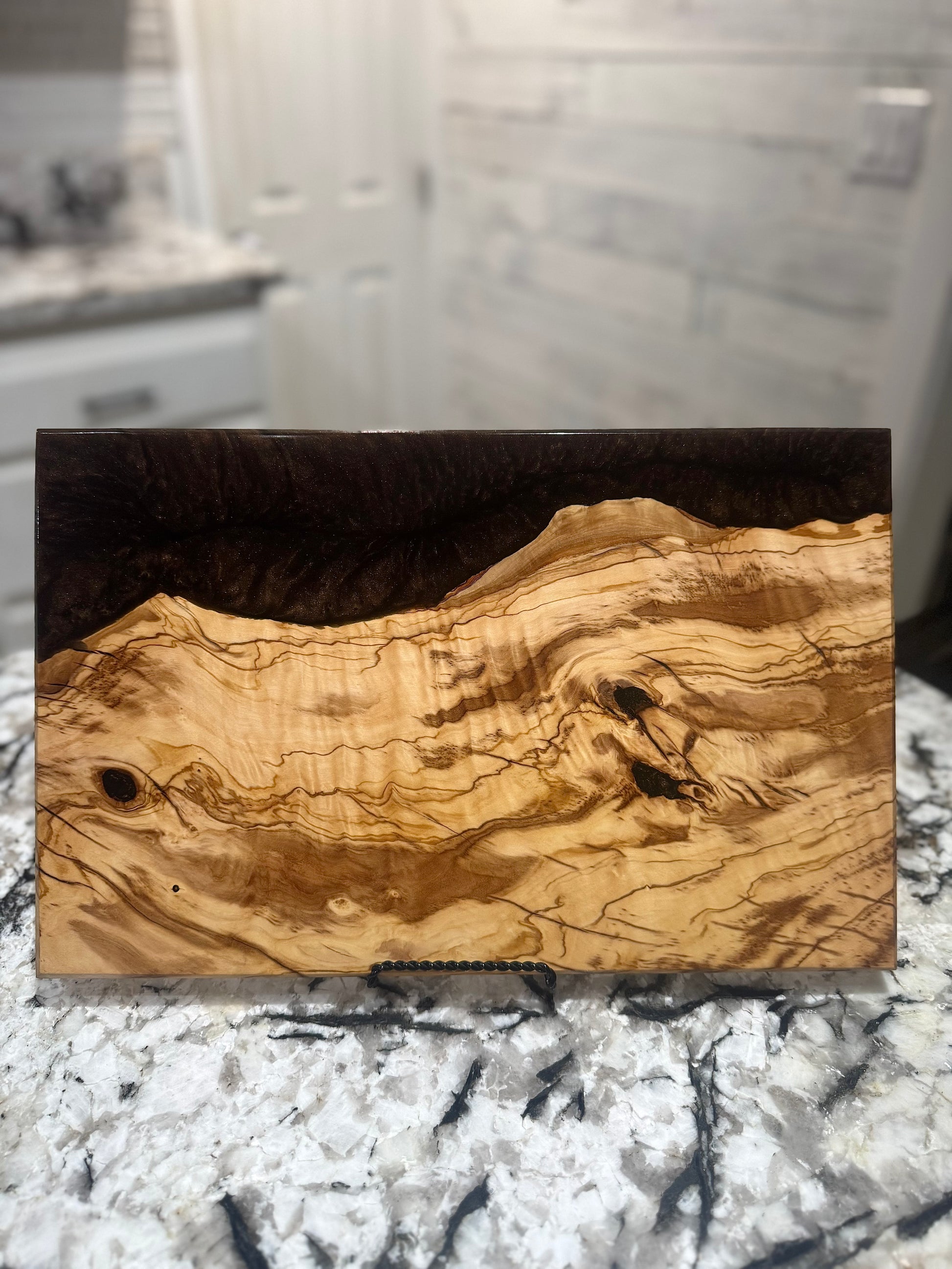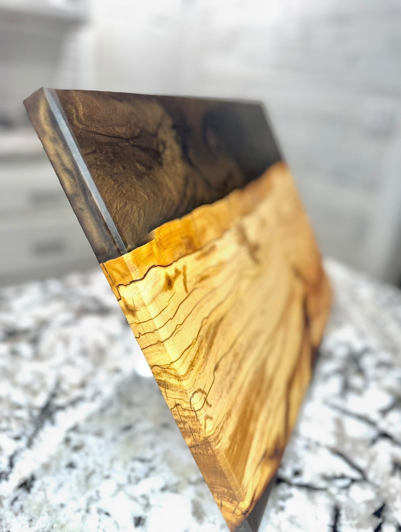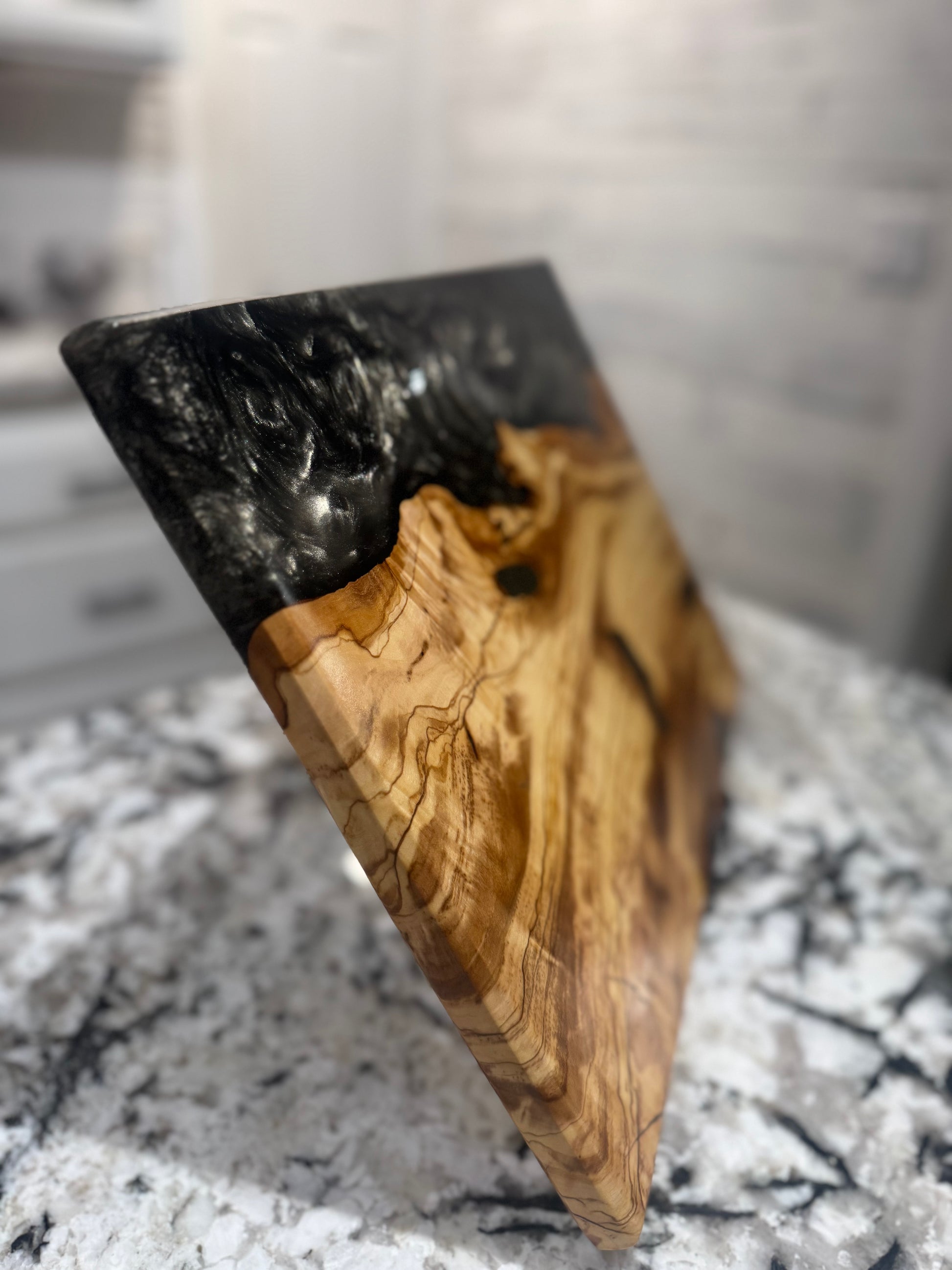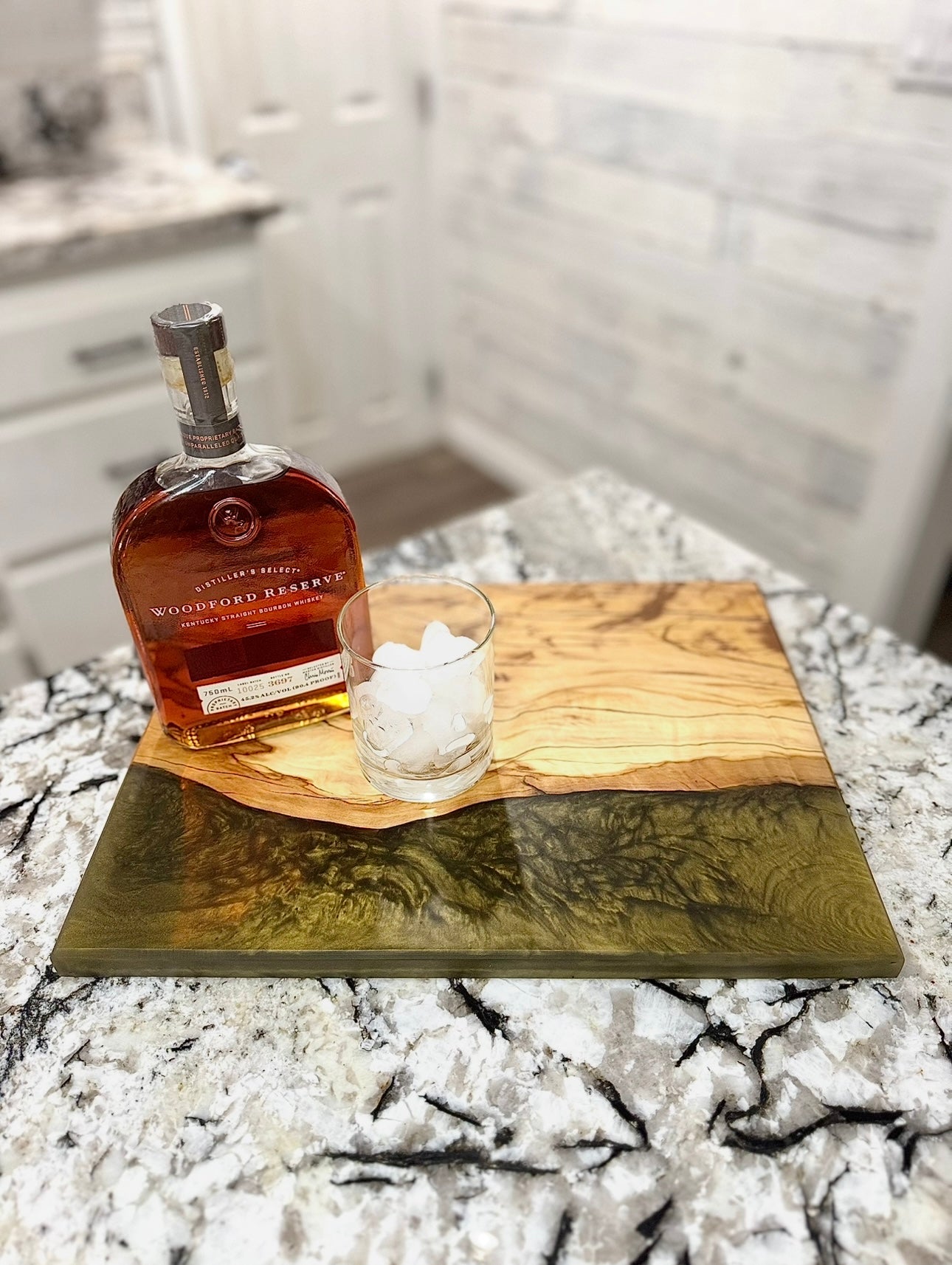 Offering Eastern Olive and Epoxy Serving Boards for a special occasion or daily use. These boards show off their elegant beauty with epoxy swirls along side.
