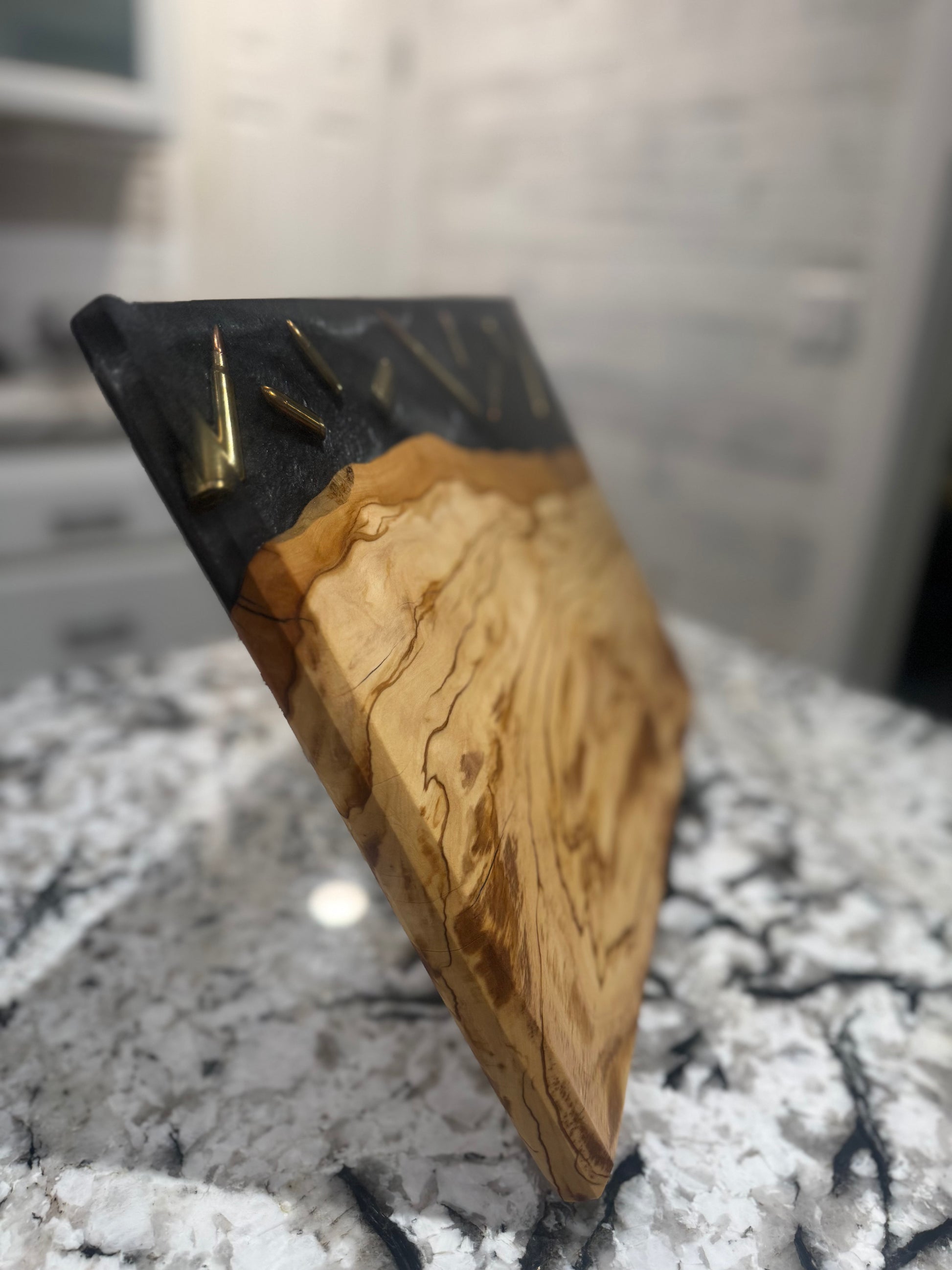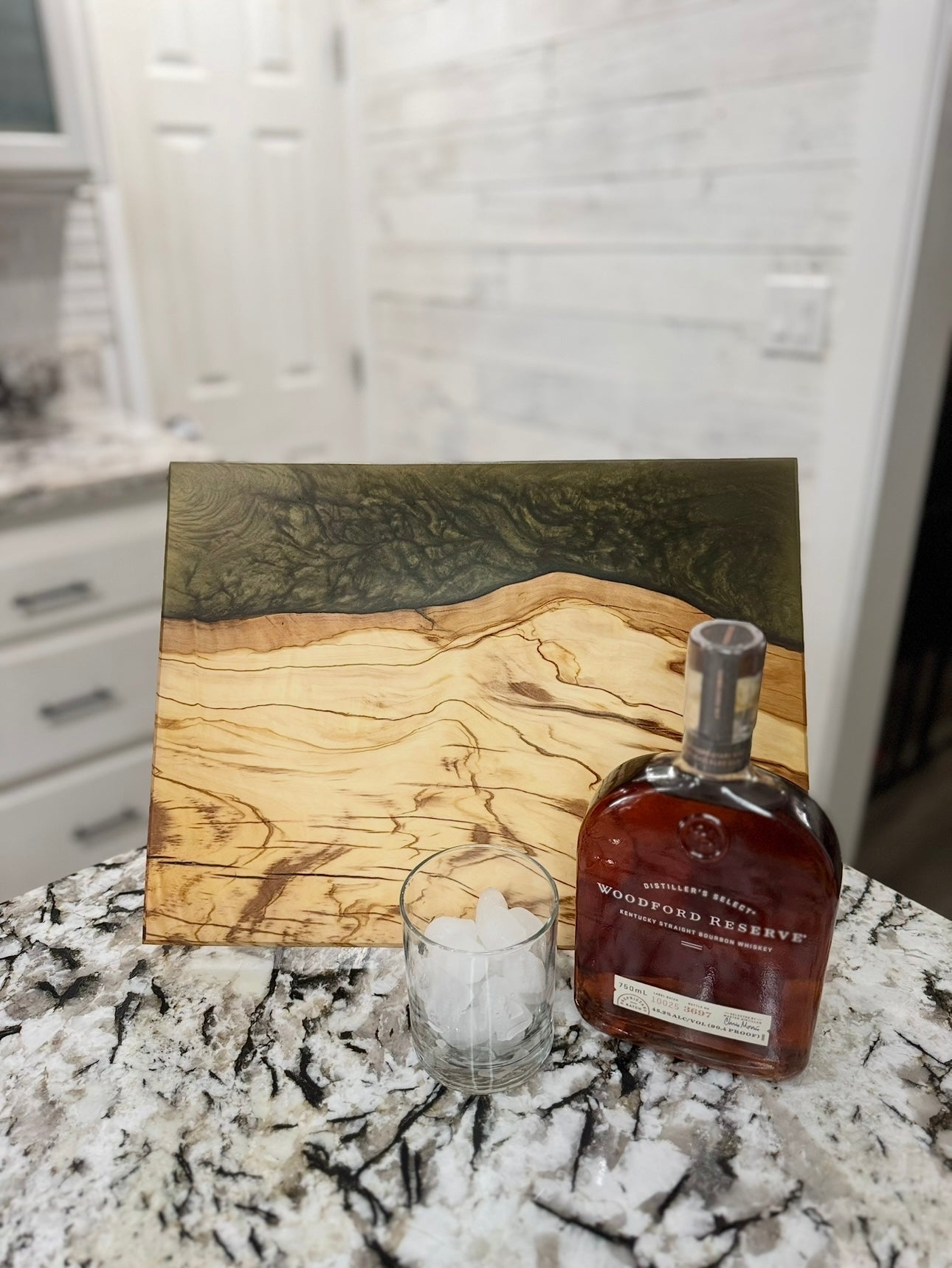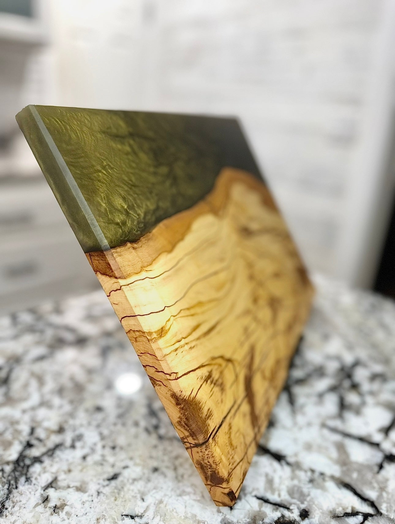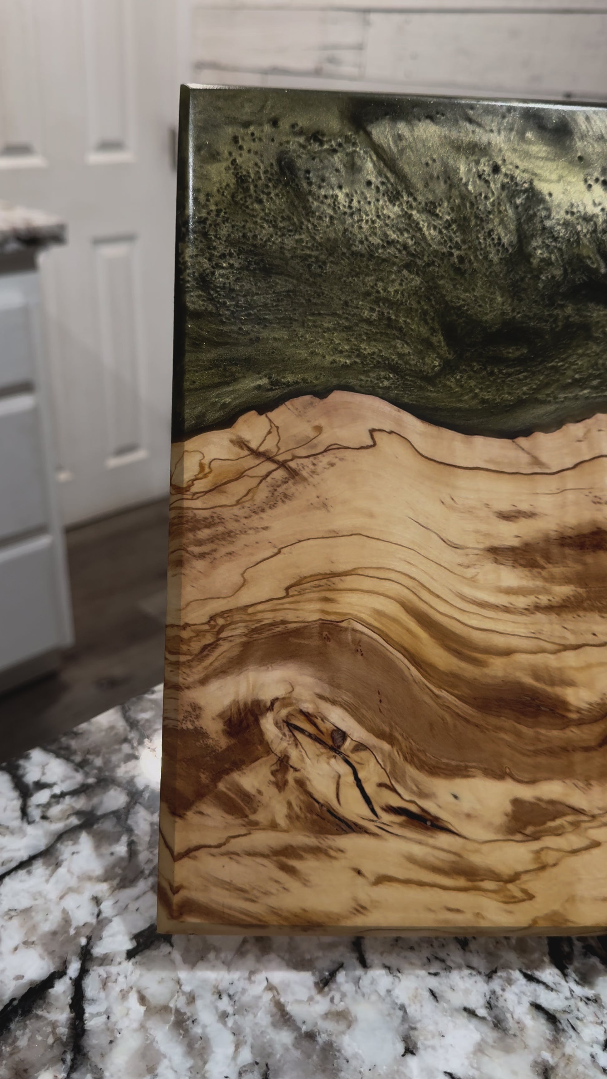 Offering Eastern Olive and Epoxy Serving Boards for a special occasion or daily use. These boards show off their elegant beauty with epoxy swirls along side.