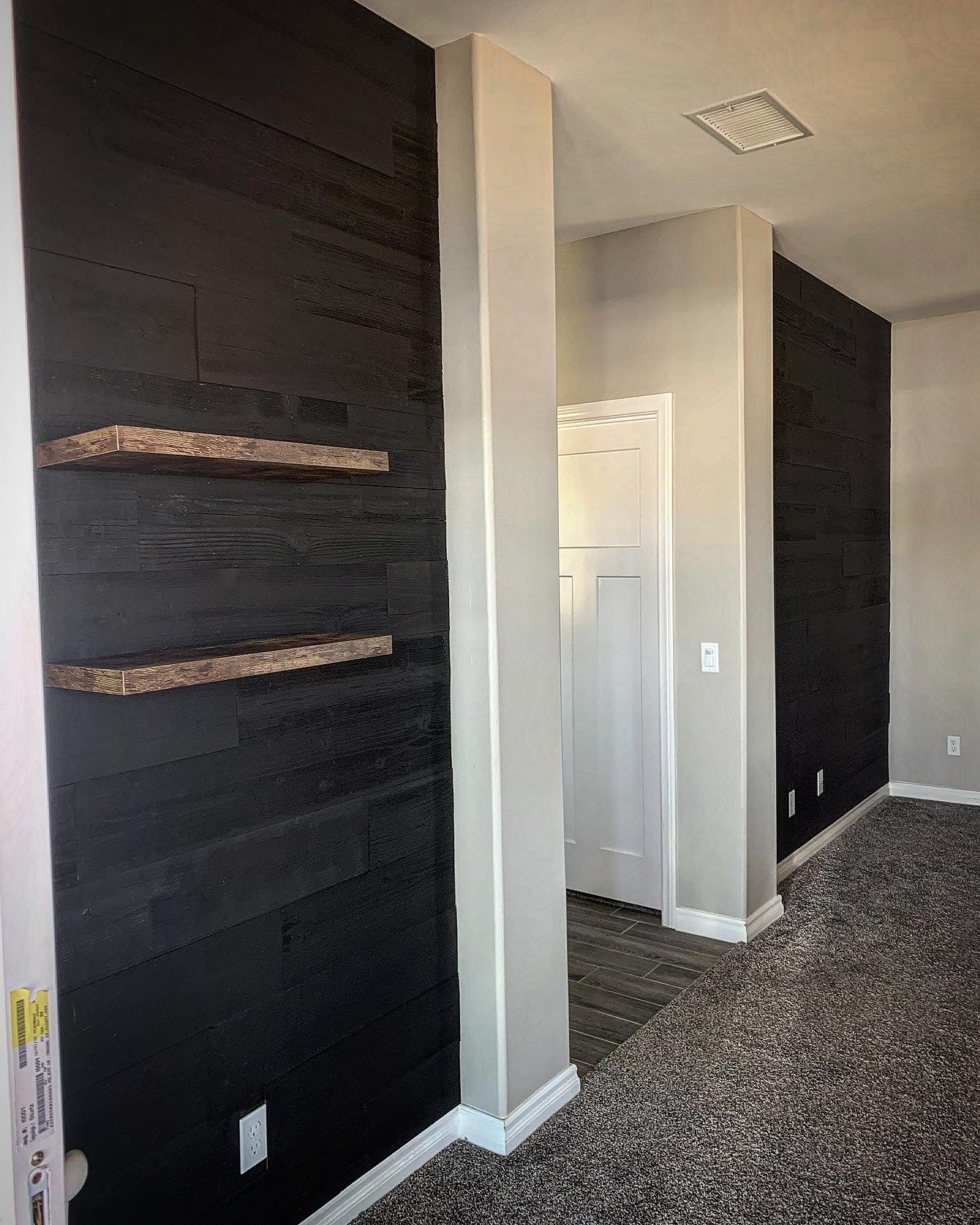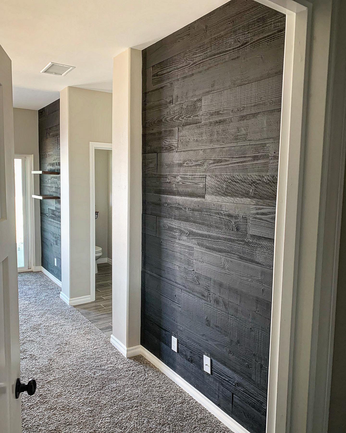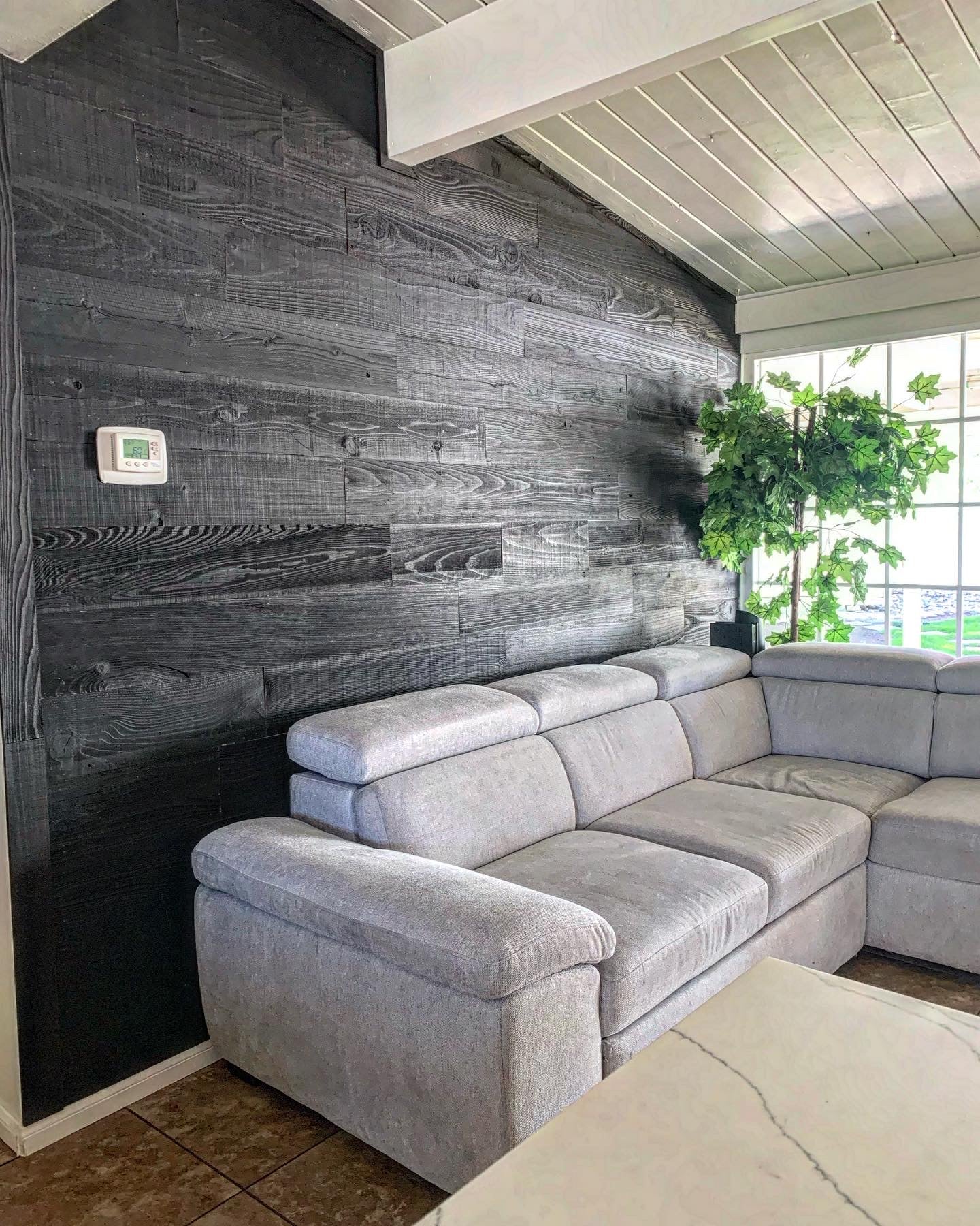 Transform your living space with our Reclaimed Wood - Charcoal Mix. This stunning charcoal-colored wood is perfect for adding a rustic touch to any room in your home. With its unique blend of reclaimed wood, each board has its character and charm, making them ideal for creating an accent wall.