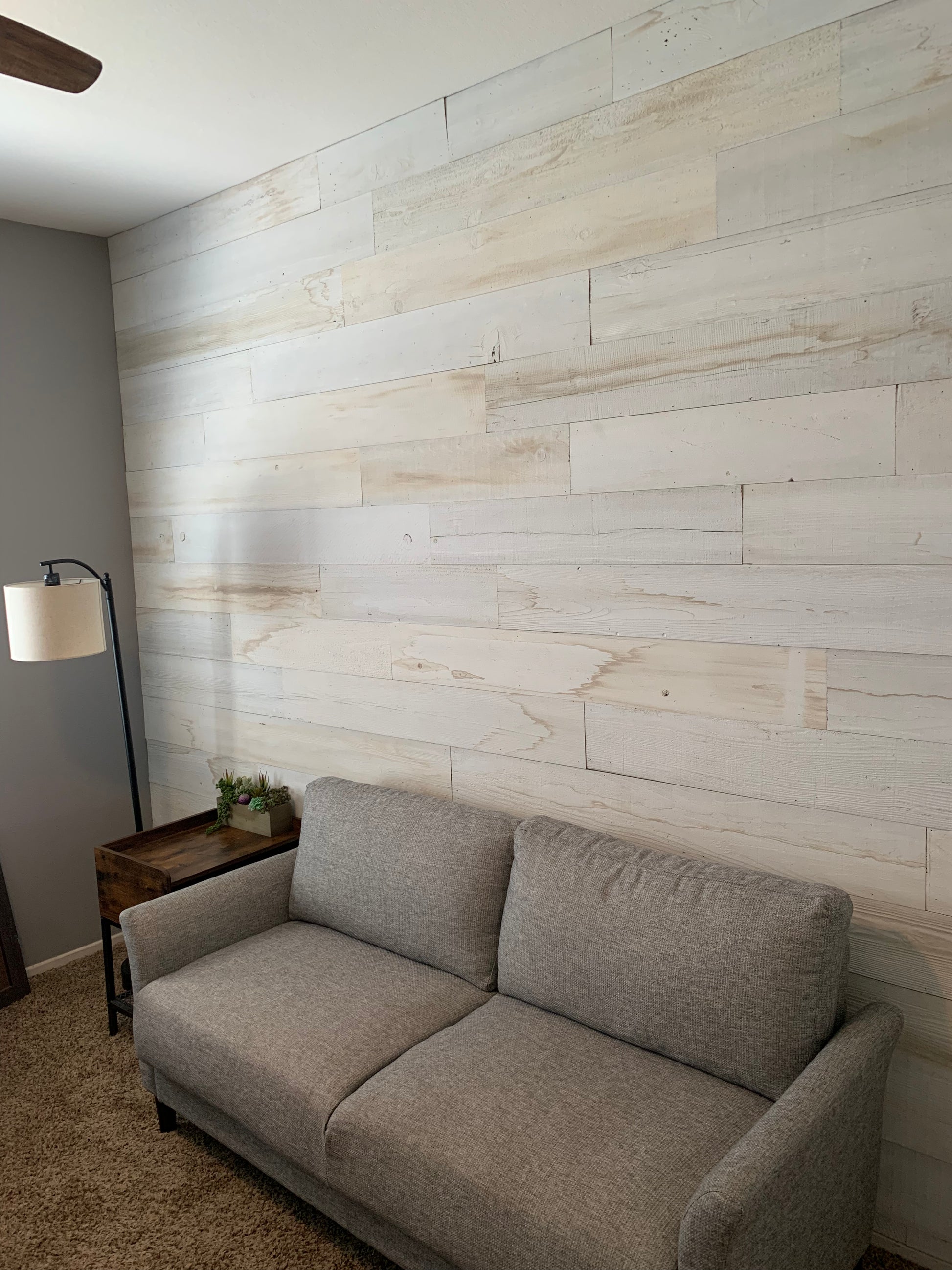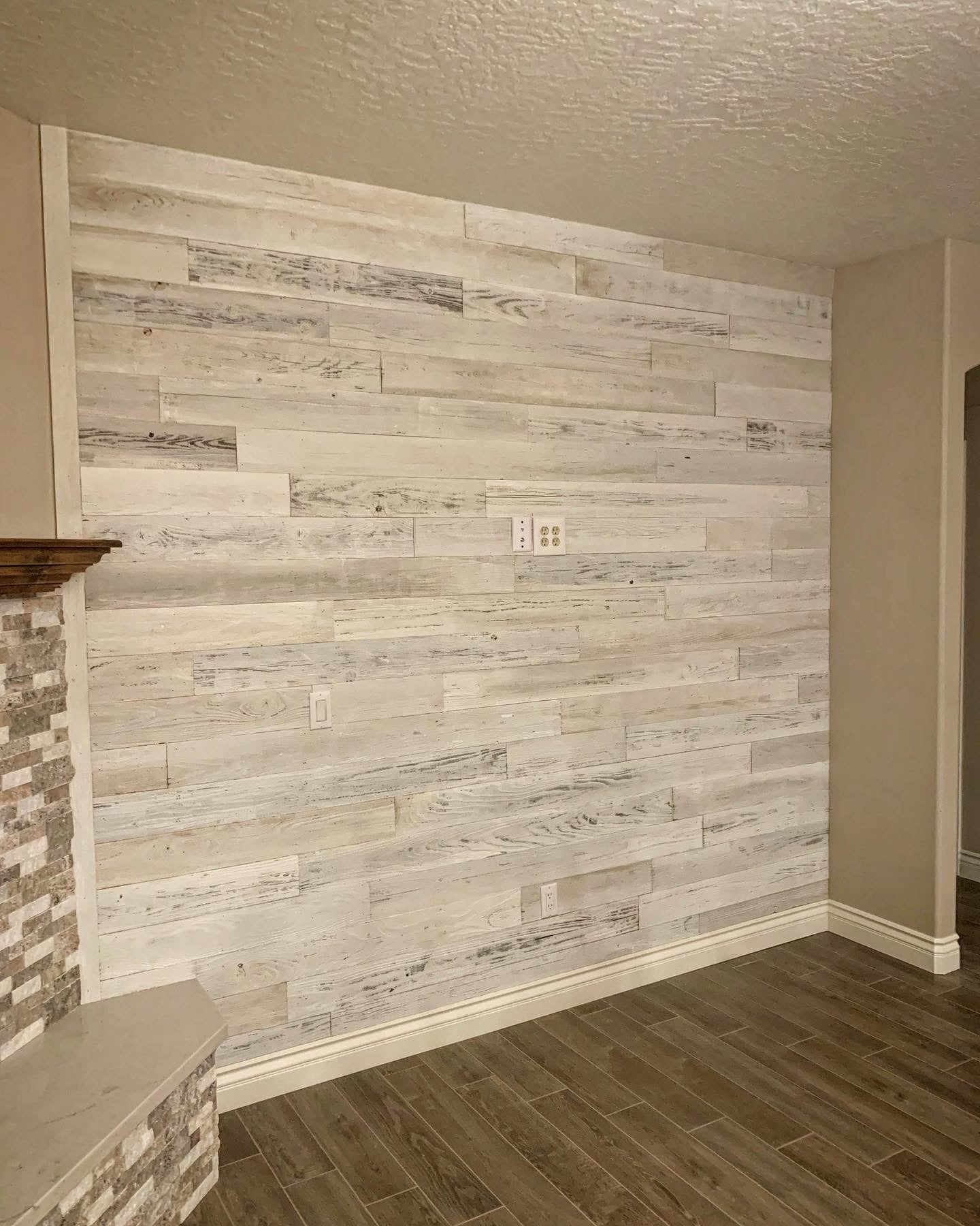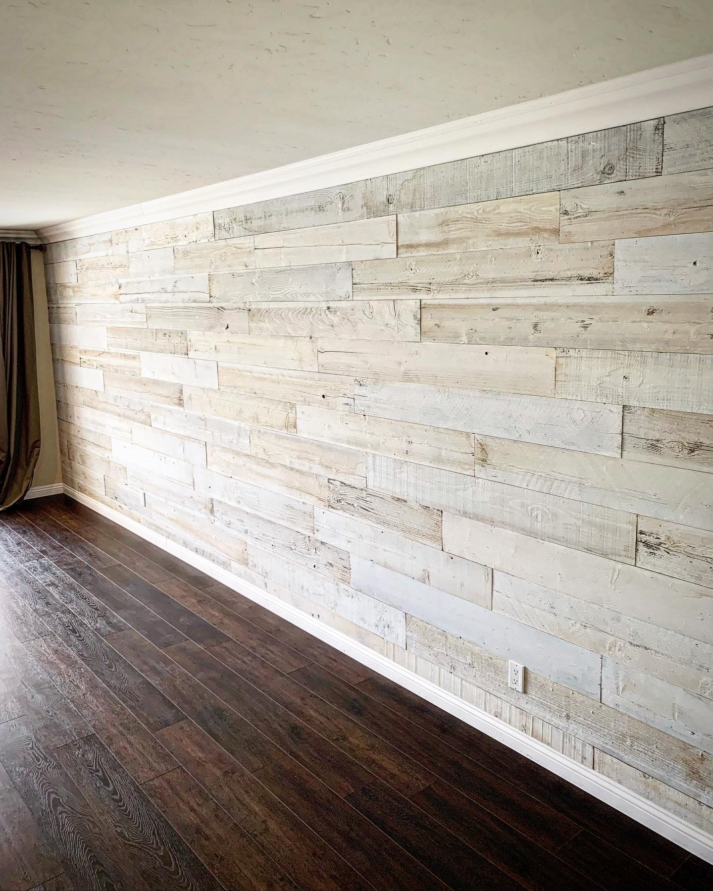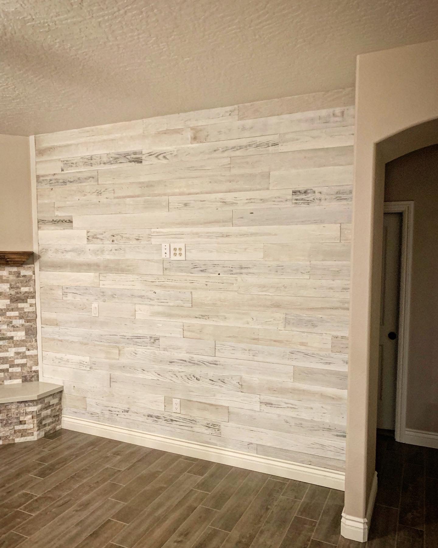 If you're looking for a cozy cabin-like feel in your living room or want to add warmth and texture in your bedroom, this white-washed reclaimed wood paneling is perfect. It's great for creating accent walls or unique furniture pieces like headboards or coffee tables.